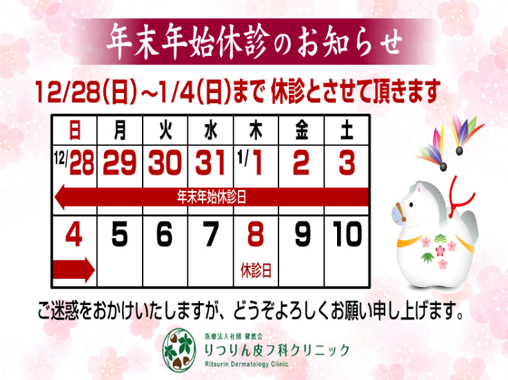 2025年12月28日(日曜日)~2026年1月4日(日曜日)は年末年始の休診日となります。